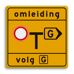 Dit gele omleidingsbord wordt gebruikt om een route te communiceren naar een specifieke doelgroep. Hierbij kan er worden gedacht aan aanduidingen voor voetgangers, fietsers, hulpdiensten of bezoekers van een evenement.