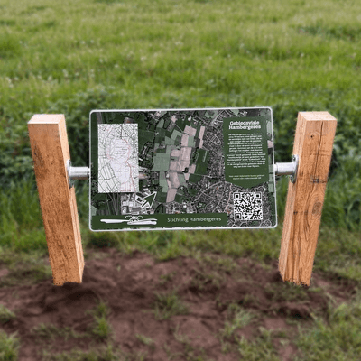 Dit informatiebord is vervaardigd uit duurzaam volkernmateriaal en wordt geleverd met robuuste houten staanders. Het volkernmateriaal is bestand tegen diverse weersomstandigheden, waardoor het ideaal is voor langdurig buitengebruik. De natuurlijke uitstraling van de houten staanders maakt dit bord bijzonder geschikt voor parken, natuurgebieden en andere omgevingen waar een organische look gewenst is. Met de mogelijkheid om je eigen ontwerp aan te leveren, kun je het bord volledig afstemmen op de specifieke behoeften van je locatie.