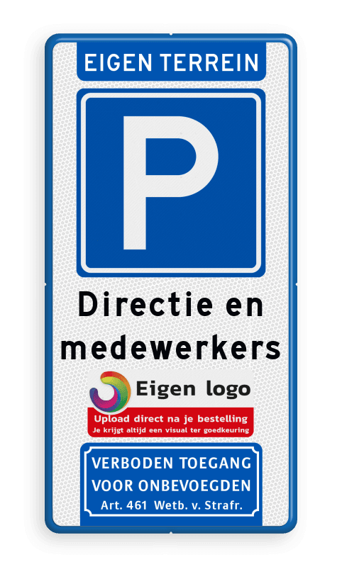 Parkeerbord voor eigen terrein met eigen logo
