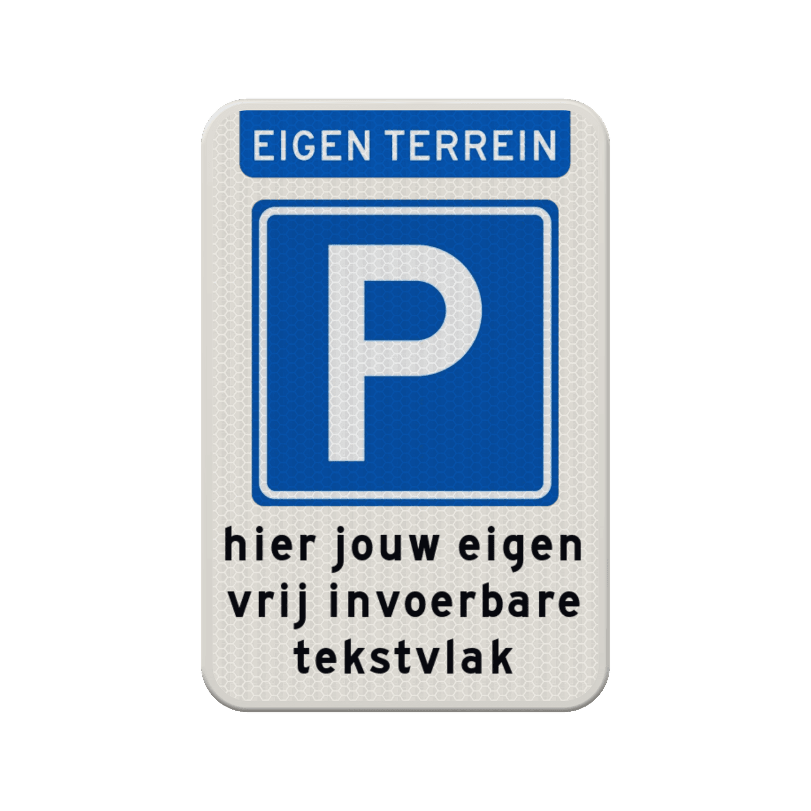 Parkeerbord met eigen tekst voor eigen terrein - reflecterend