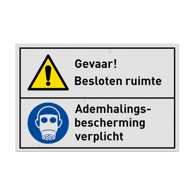 Veiligheidsbord Waarschuwing besloten ruimte, ademhalingsbescherming verplicht