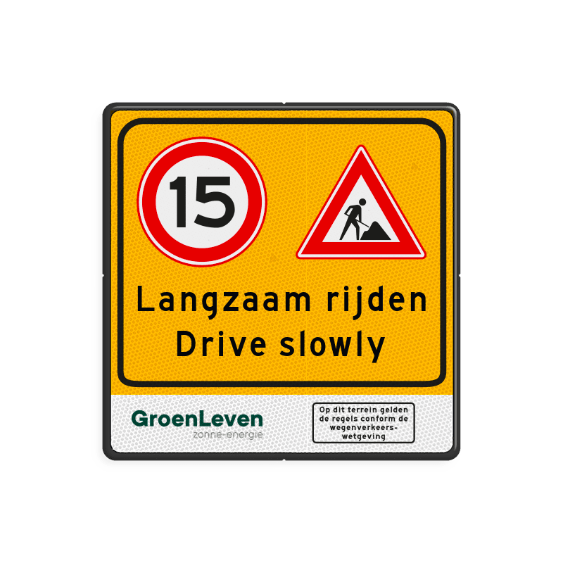 Verkeersbord langzaam rijden wegwerkzaamheden - reflecterend + logo