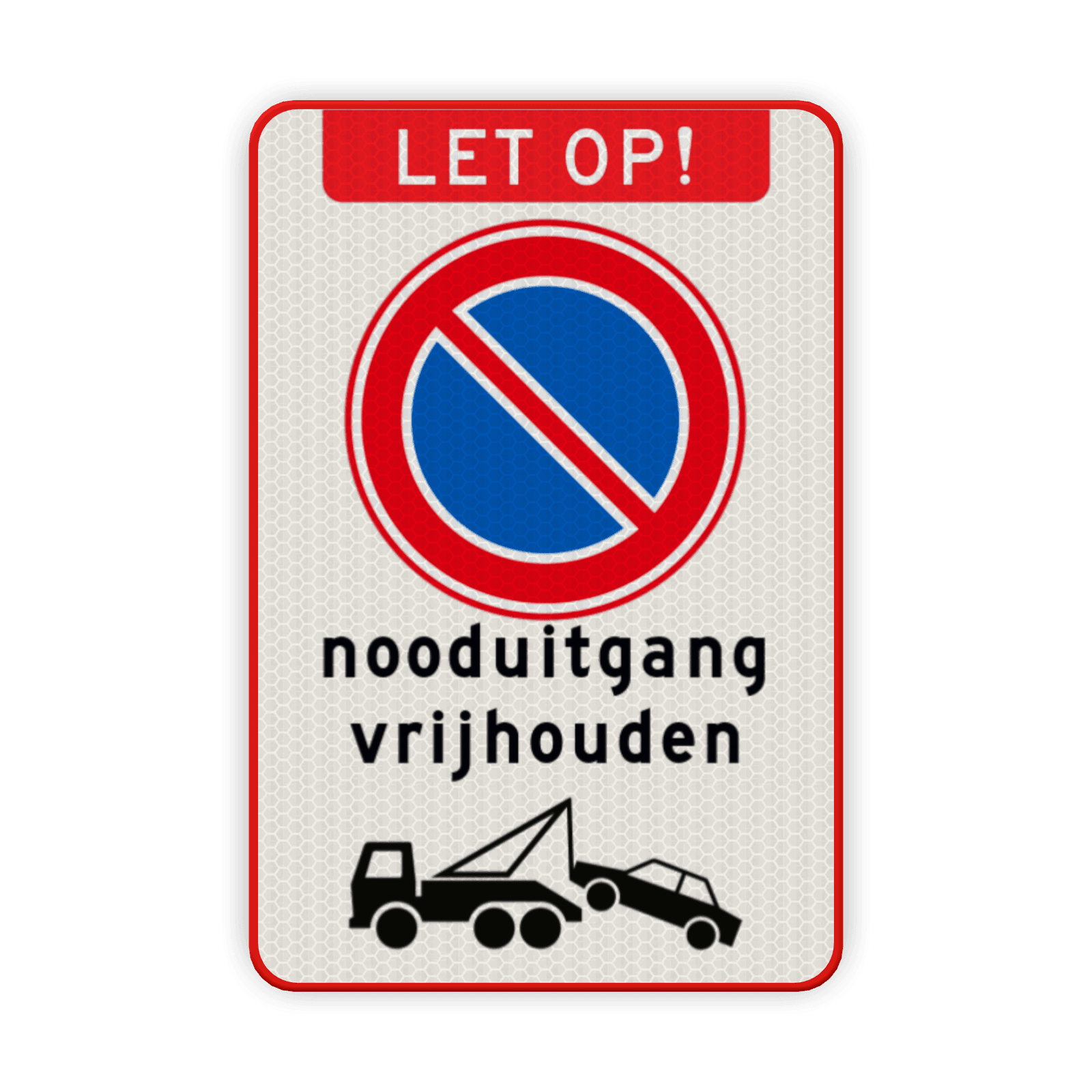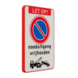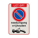 Verkeersbord nooduitgang vrijhouden niet parkeren wegsleepregeling - reflecterend