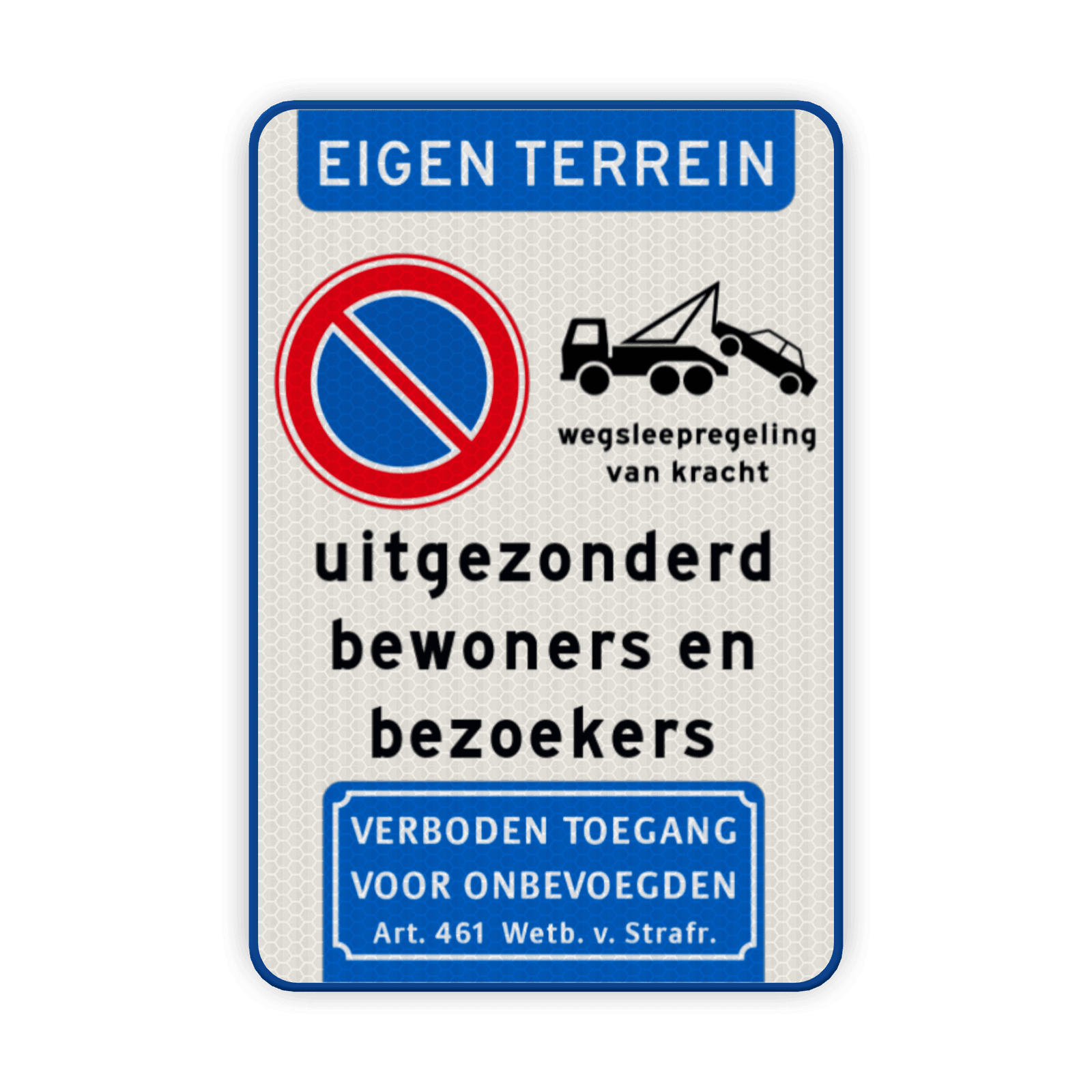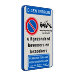 Verkeersbord eigen terrein parkeerverbod uitgezonderd bewoners/bezoekers - reflecterend