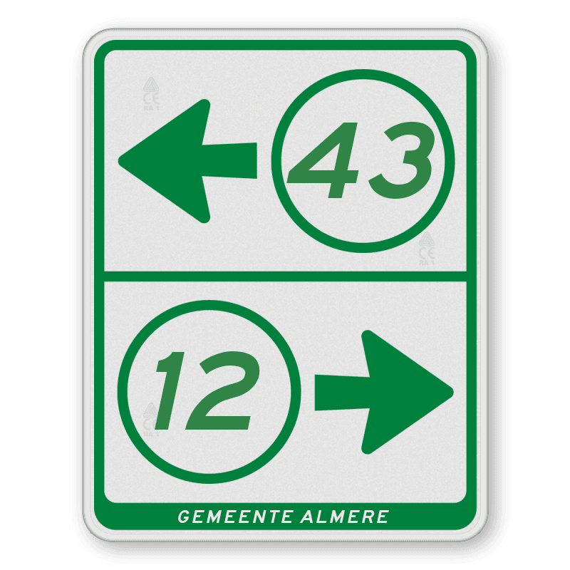 Officieel aluminium fietsroutebord met een dubbel omgezette rand.