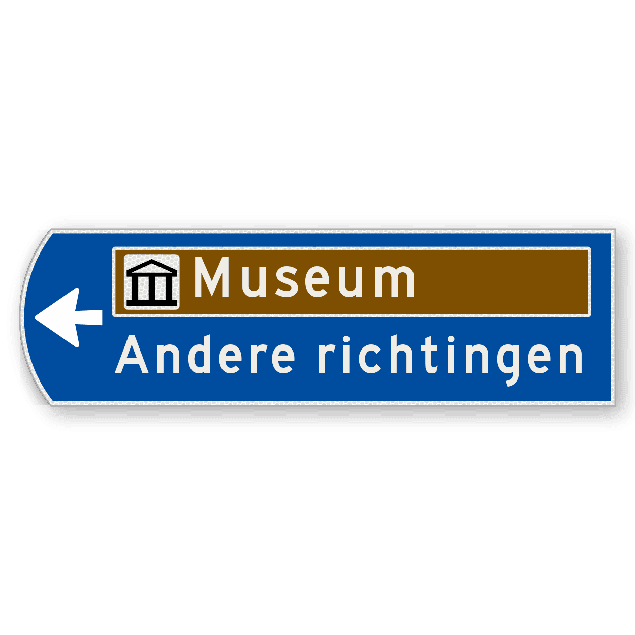 Handwegwijzer klein linkswijzend met bruin veld bovenin en witte tekst 990x295