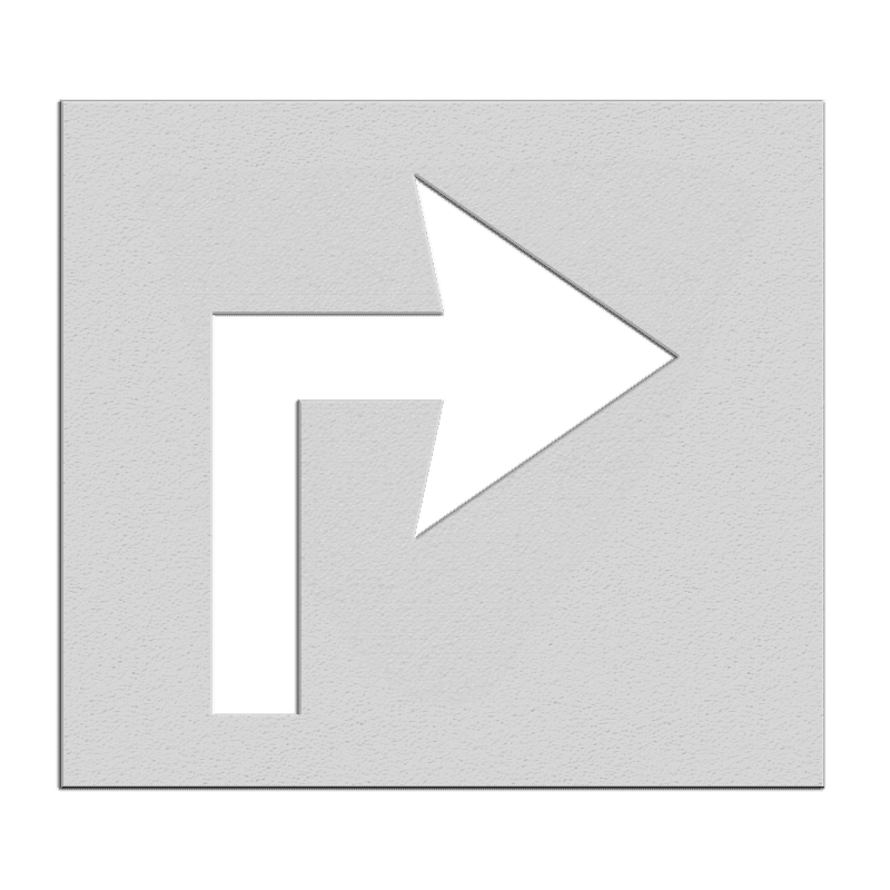 Sjabloon / spuitmal ‘afslaande pijl’ voor het eenvoudig zelf aanbrengen van wegmarkering.
