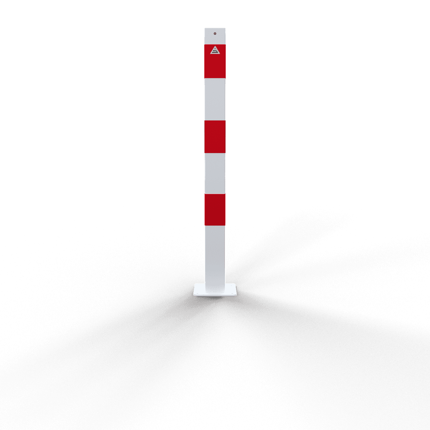 Parkeerpaal staal 70x70mm wit/rood - met voetplaat