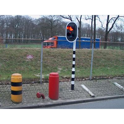 Drukknopmast V130 zwart/wit gecoat met serviceluik voor verkeerslicht