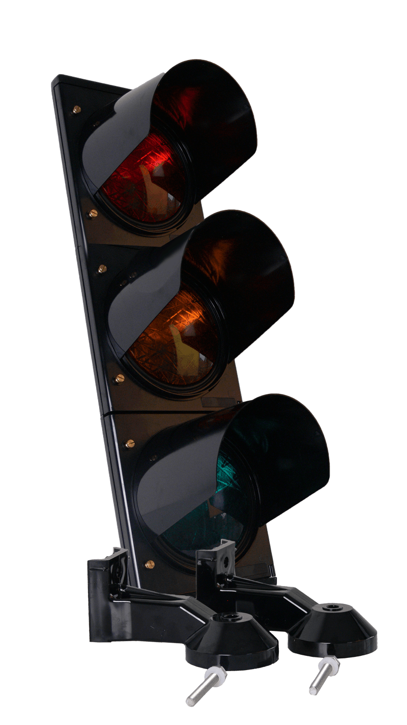Verkeerslicht met een slagvaste polycarbonaat behuizing IP65, standaard voorzien van 2 kunststof bevestigingsarmen t.b.v. wand-, of mastmontage. (zie optielijst)
