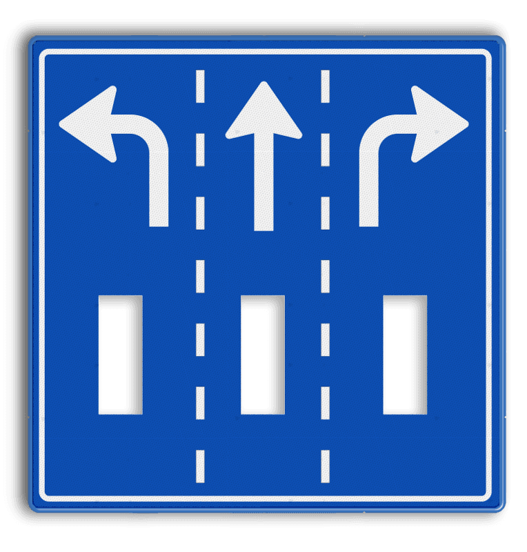 Informatiebord voorsorteren 1180x1180mm met uitsparingen voor 3 verkeerslichten
