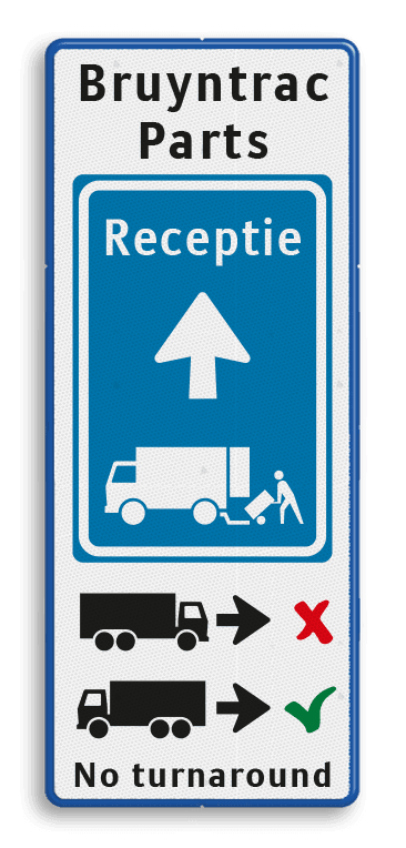 Al onze borden worden - tenzij anders aangegeven - voorzien van reflecterende folie. Deze speciale folie weerkaatst licht en is dankzij een zeer hoog helderheidsniveau altijd goed zichtbaar. Hierdoor zijn (verkeers)borden ook in het donker goed te lezen. Dankzij deze folie komt je boodschap in alle omstandigheden goed over.