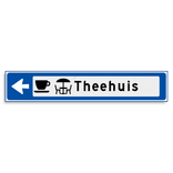 Verwijsbord KOKER Blauw/wit/zwart - pijl links, met 2 pictogrammen - Klasse 3 reflecterend