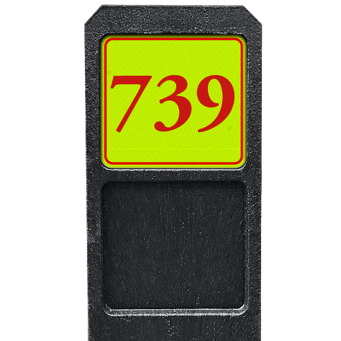 Verzwaarde huisnummerpaal van gerecycled kunststof, voorzien van 2 uitsparingen aan twee zijden voor plaatsing van o.a. huisnummerbordjes.