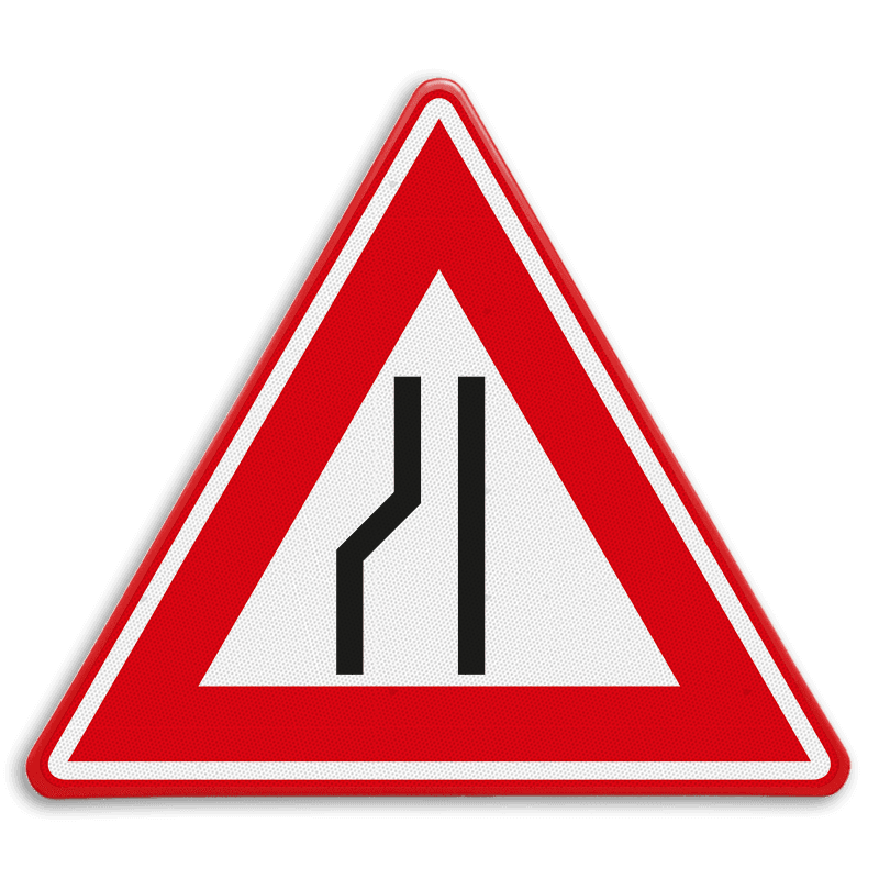 Verkeersbord RVV J19 - Rijbaan versmalling links - reflecterend