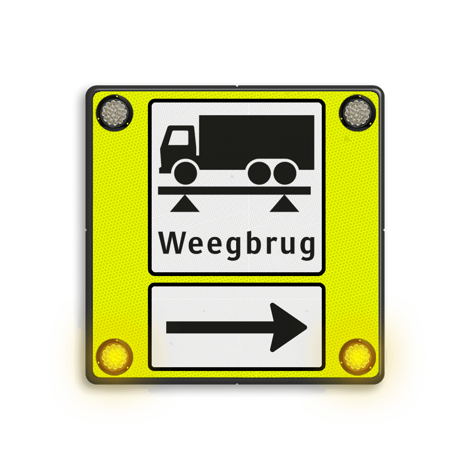 Al onze borden worden - tenzij anders aangegeven - voorzien van reflecterende folie. Deze speciale folie weerkaatst licht en is dankzij een zeer hoog helderheidsniveau altijd goed zichtbaar. Hierdoor zijn (verkeers)borden ook in het donker goed te lezen. Dankzij deze folie komt je boodschap in alle omstandigheden goed over.