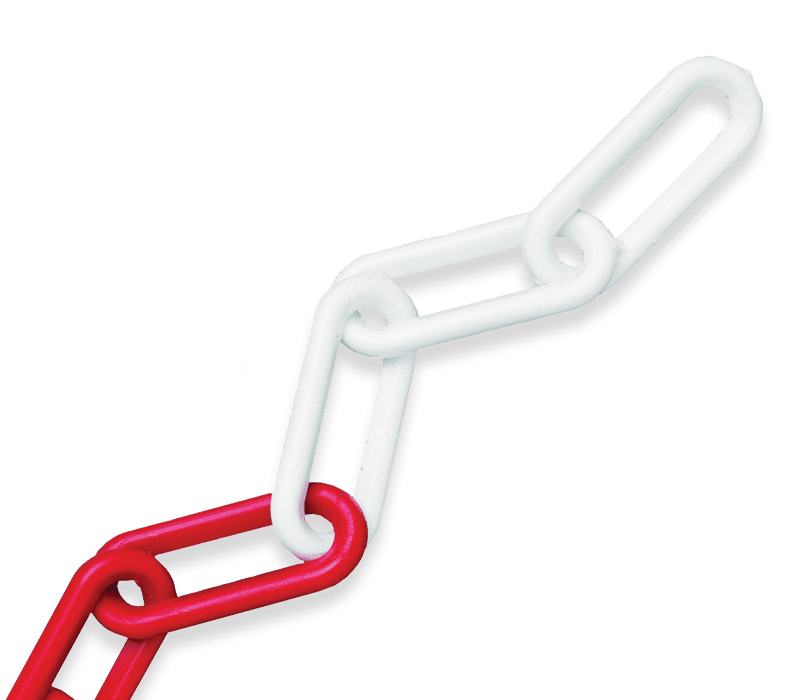 Complete set kunststof kettingpaaltjes met vulbare voet. Inclusief bijbehorende ketting en sluithaken.