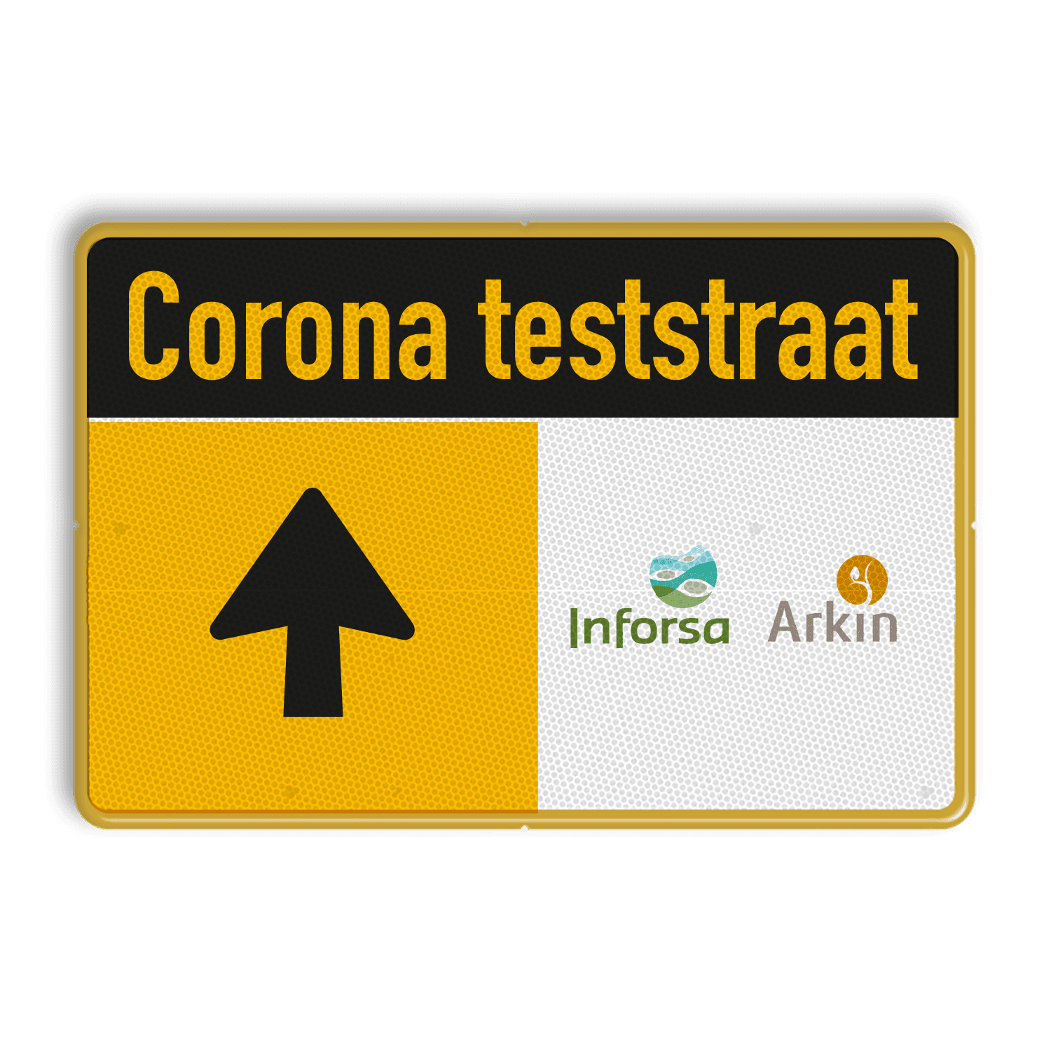 Informatiebord CORONA TESTSTRAAT + bedrijfsnaam/logo - verwijzing