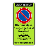 Eigen terrein + RVV E01 + eigen tekst + wegsleepregeling + bedrijfsnaam