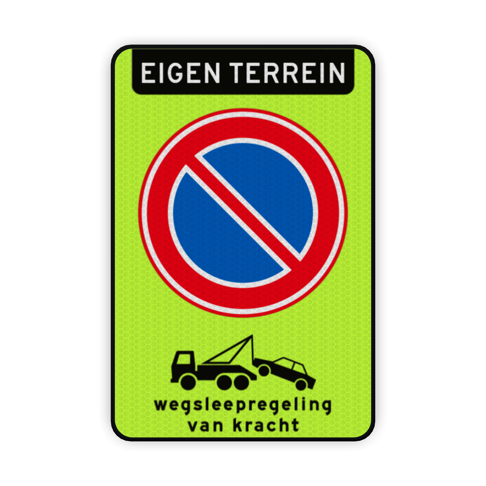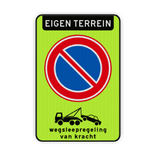 Verkeersbord eigen terrein verboden te parkeren RVV E01 + wegsleepregeling - reflecterend