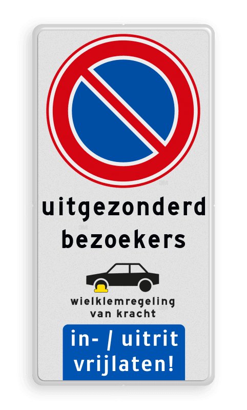 Aluminium informatiebord met een dubbel omgezette rand met print van tekst / pictogrammen in reflectieklasse 1 (incl. anti-graffiti laminaat).
