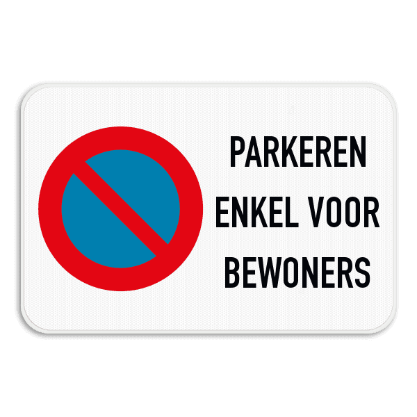 Aluminium bord omgeplooide rand met gelaste profielen met print van tekst / pictogrammen in reflectieklasse 3 (incl. anti-graffiti laminaat).