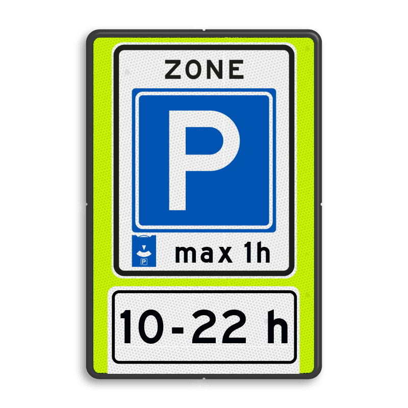 Pictogram: E10zb ZONE parkeerschijf: max 1h