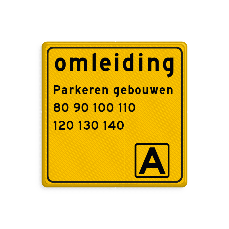 Aluminium omleidingsbord met een dubbel omgezette rand met print van tekst / pictogrammen in reflectieklasse 3 (incl. anti-graffiti laminaat).