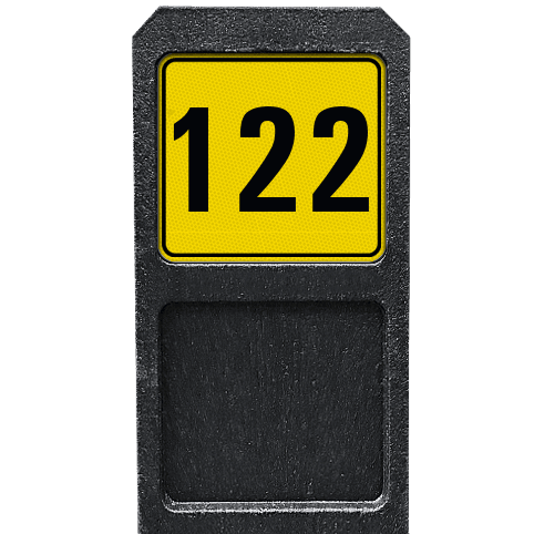Bermpaal 1250x150x40mm met reflecterend bordje 119x109mm met print van tekst / pictogrammen in reflectieklasse 3 (incl. anti-graffiti laminaat).