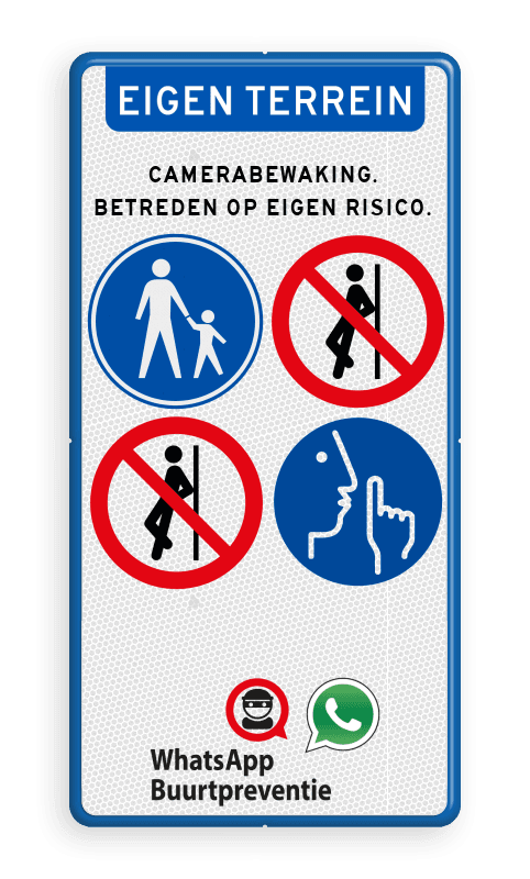 Aluminium informatiebord met een dubbel omgezette rand met print van tekst / pictogrammen in reflectieklasse 3 (incl. anti-graffiti laminaat).
