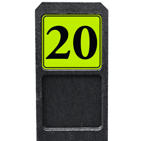 Bermpaal 1250x150x40mm met fluorescerend bordje 119x109mm met print van tekst / pictogrammen in reflectieklasse 3 (incl. anti-graffiti laminaat).