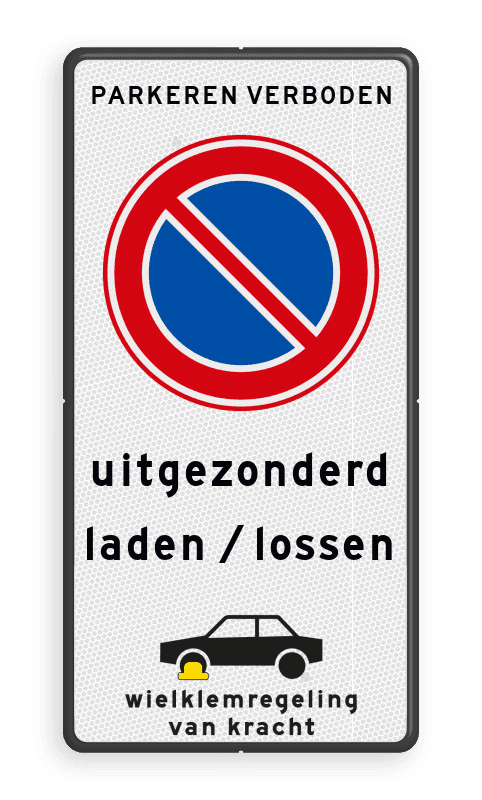 Pictogram: EIGEN TEKST (zwart): PARKEREN VERBODEN
