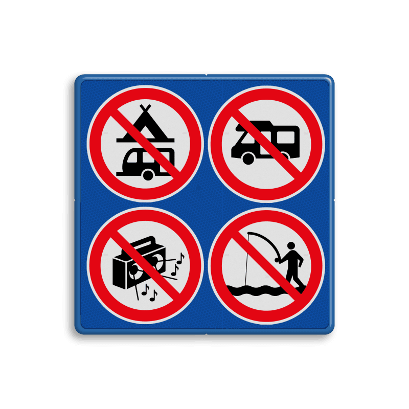 Aluminium informatiebord met een dubbel omgezette rand met print van tekst / pictogrammen in reflectieklasse 3 (incl. anti-graffiti laminaat).